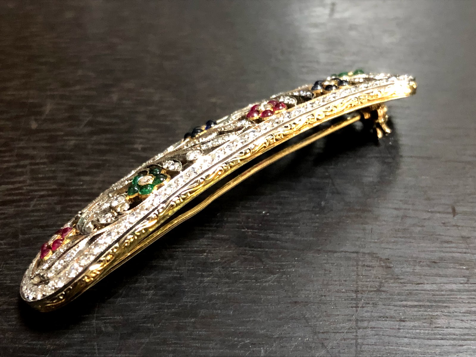 - ダイヤモンド ルビー サファイア エメラルド 草花模様のブローチ K18 /1902173